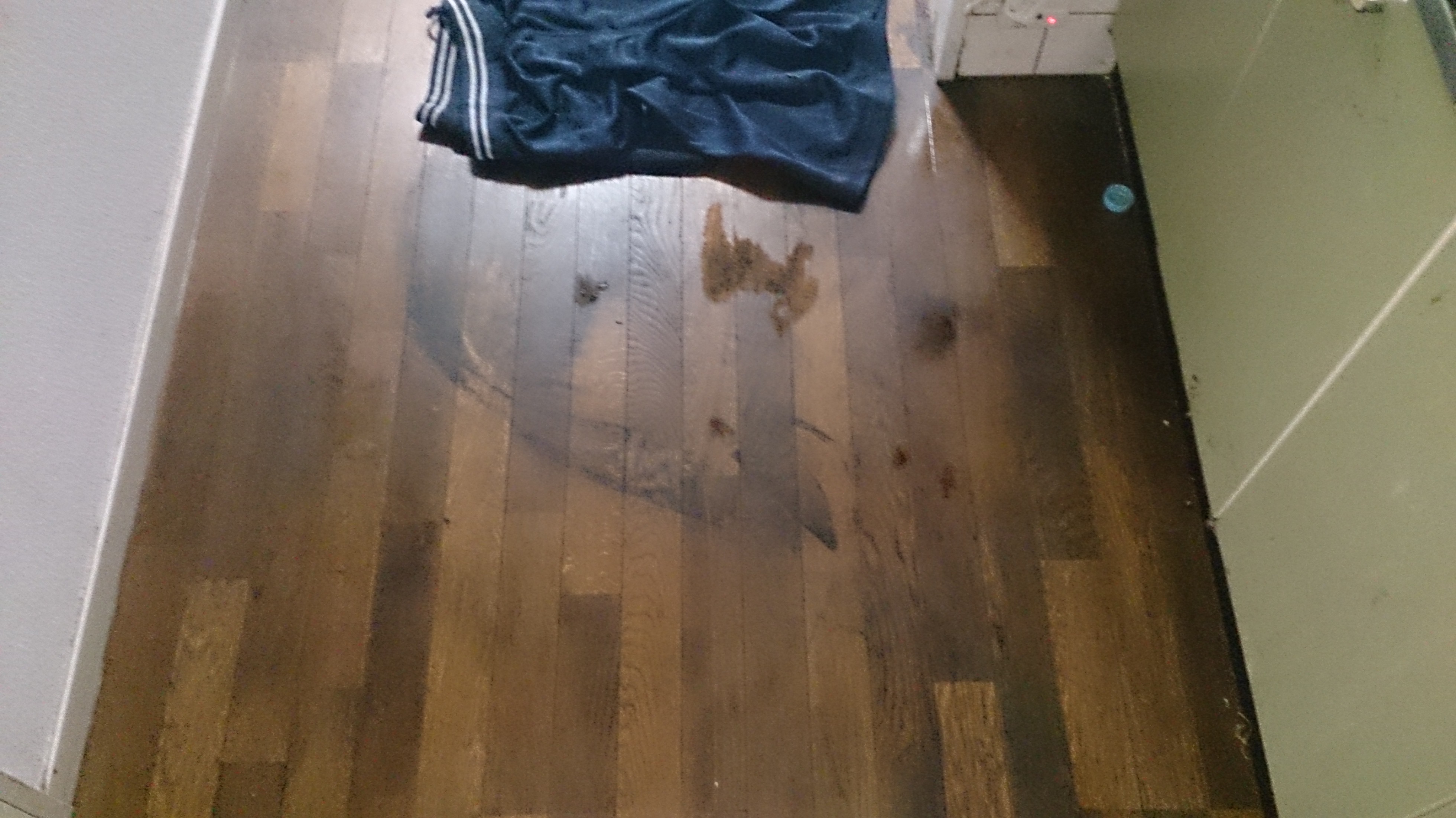 除去剤タロウはにおいの消臭効果もありますが、床材をコーティングすることで臭いを閉じ込める効果が期待できるとのこと。