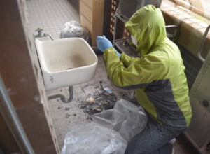 「火災があった部屋に散乱している消火器の粉を、どう処理するのだろう?」と少し心配していましたが、慣れた様子ですぐに作業に取り掛かっていただきました。